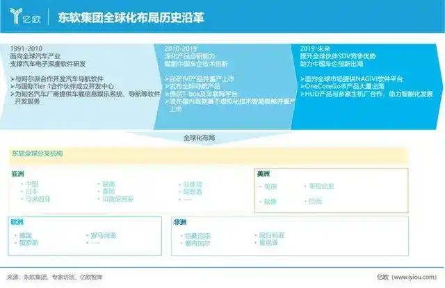 事实上,在国际市场,东软早已是一位经年老兵。亿欧汽车了解到,东软从成立的第一天就在全球市场打拼,成为全球汽车产业链重要的Tier2,而后将国际项目经验带回中国市场,成为服务本土车企的Tier1。