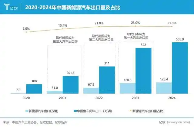 亿欧智库在《2024中国新能源智能汽车产业链出海战略研究报告》中指出,中国新能源智能汽车(SEV)出海规模预计2025年可以达到325亿美元,2028年达到1,396亿美元,2030年达到2,363亿美元,超过万亿人民币。