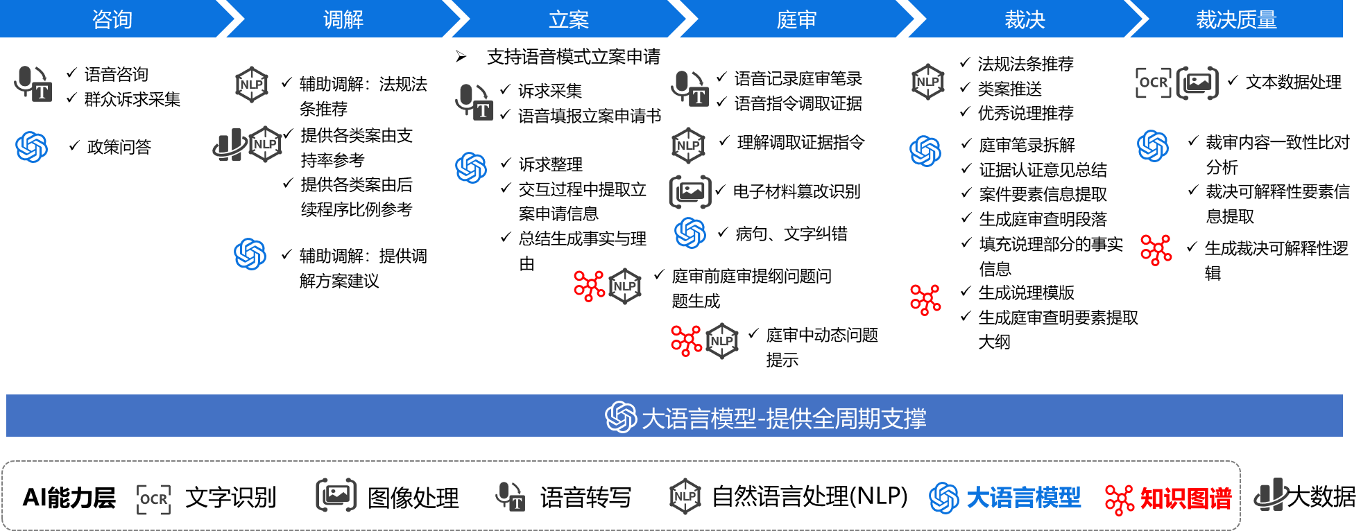 智能仲裁系统,能够有效实现劳动人事争议调解仲裁业务全流程智能化。在咨询接待、立案、庭审、裁决等各环节借助人工智能技术和信息化手段,优化公共服务效果,提升案件办理效能,发挥态势感知作用,科学系统推进工作。