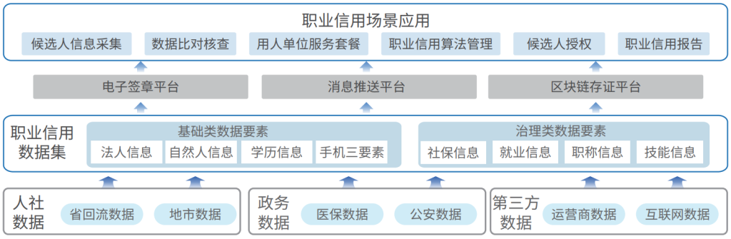 依托信息化技术实现精准的信息核查与风险评估,验证候选人背景真实性并量化潜在风险;基于多维度数据采集构建个人数字画像,融合行为轨迹、职业属性及偏好特征形成立体化职业信用图谱;深度激活公共数据价值,通过整合政府开放数据资源实现职业生涯全周期核验,推动人才治理从经验驱动向数据驱动转型;通过企业购买服务的商业模式,将官方数据库、第三方接口与自主申报信息交叉验证,生成标准化职业信用报告,既满足企业差异化招聘需求,又通过数据要素流通创造经济价值,形成“技术核验、画像构建、数据赋能、商业闭环”的完整价值链,实现社会效率提升与治理能力现代化的双重突破。