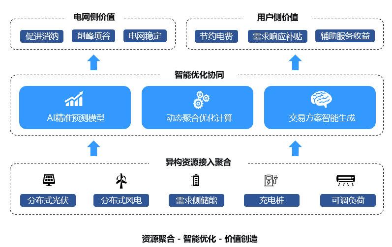 平台通过物联网技术广泛接入分布式光伏、储能、充电桩等异构资源,并利用AI算法进行精准功率预测。其核心在于多目标优化调度引擎,能基于实时电价与电网需求,自动制定最优调度与市场投标策略,最终通过可靠指令控制,使分散资源安全、经济地参与电力系统平衡与市场交易,转化为稳定可靠的“虚拟电厂”。