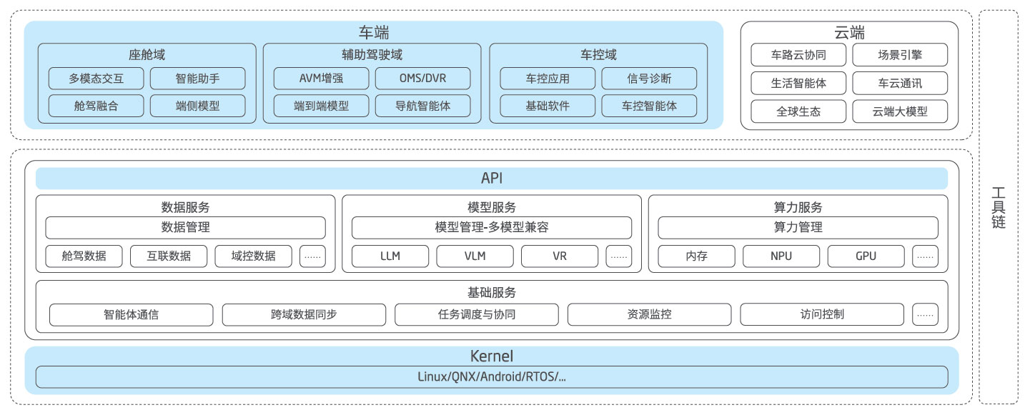 • 智能化:覆盖车云,从底层深度融合Al大模型,打造智能用车场晏体验