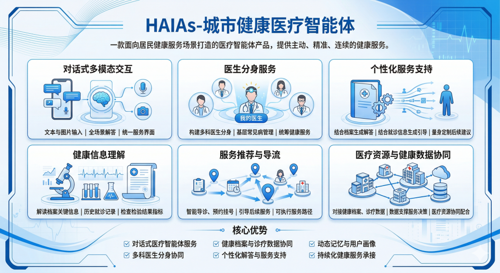 - 由“我的医生”智能体承接居民日常健康需求,统筹健康咨询、慢病管理、重点人群关怀、风险提示和就医建议等服务内容
