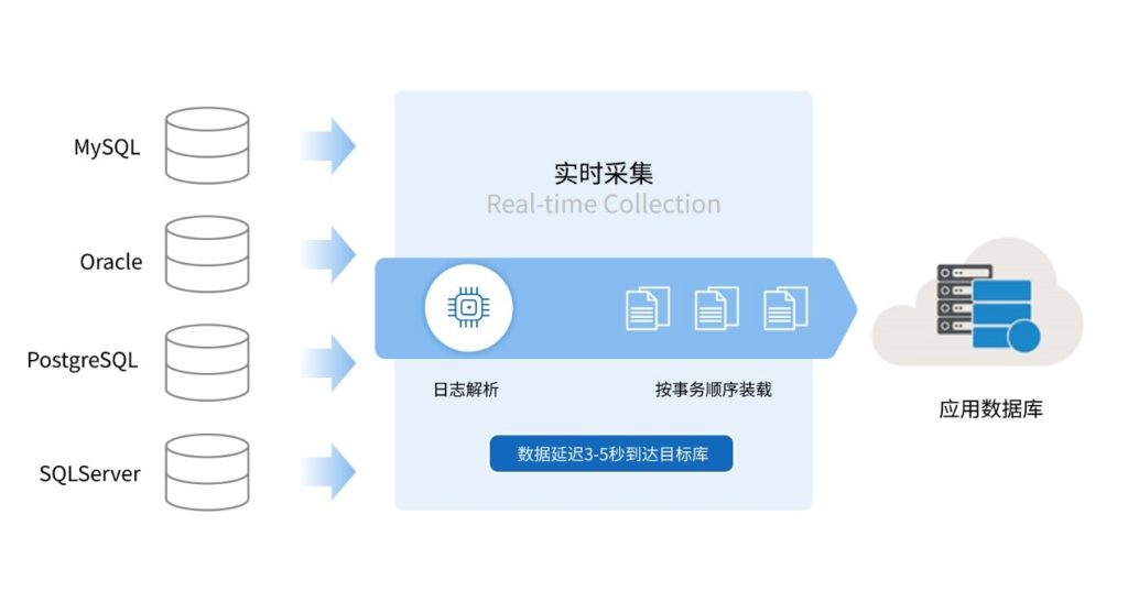 - 通过解析数据库变更日志智能识别变化数据,无需全量采集,仅读取增量变化数据。