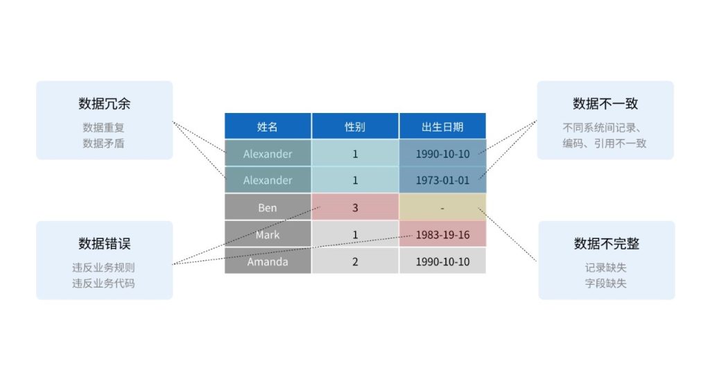 - 对数据质量问题进行精准分类、全流程跟踪及治理情况进行及时监控展示,实现问题数据闭环管理。