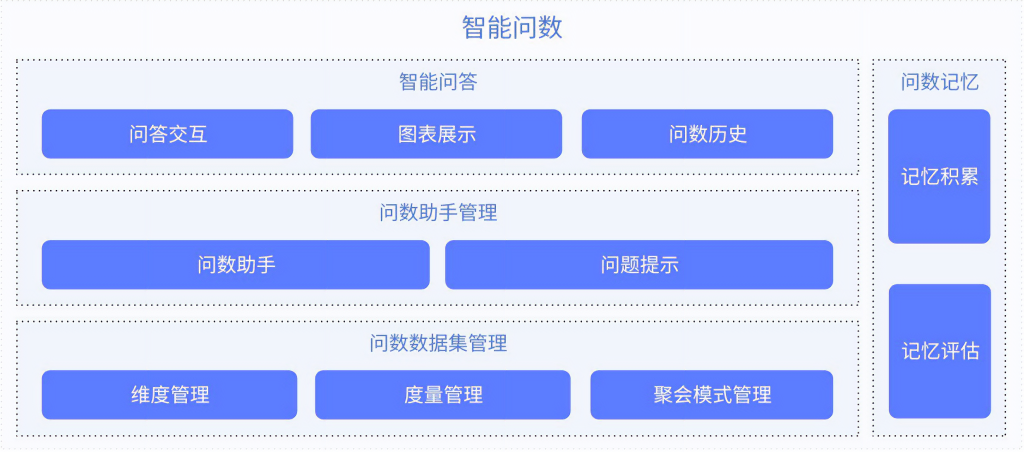 提供基于自然语言提问的智能数据查询与分析服务,支持用户通过对话方式直接获取业务数据洞察。系统依托大语言模型自动解析问题意图,关联已配置的业务指标与维度,生成可执行的查询语句并返回多形态可视化结果。具备问答记忆学习能力,支持根据用户反馈持续优化解析准确度,并提供数据查询条件灵活调整、结果多形式展示、对话管理等功能,帮助用户以更自然、高效、准确的方式获取数据支持。