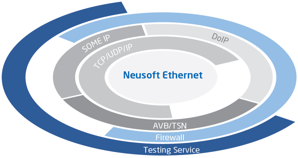 Neusoftは、現在既に標準プロトコルスタックアダプテーション、独自で開発した車載プロトコルスタック製品、セキュリティファイヤーウォール及びイーサーネット測定ソリューションを含むイーサーネット研究開発トータルソリューションを確立し、当該ソリューションは既に世界中複数のトップOEM車種での応用において成功を収めている。